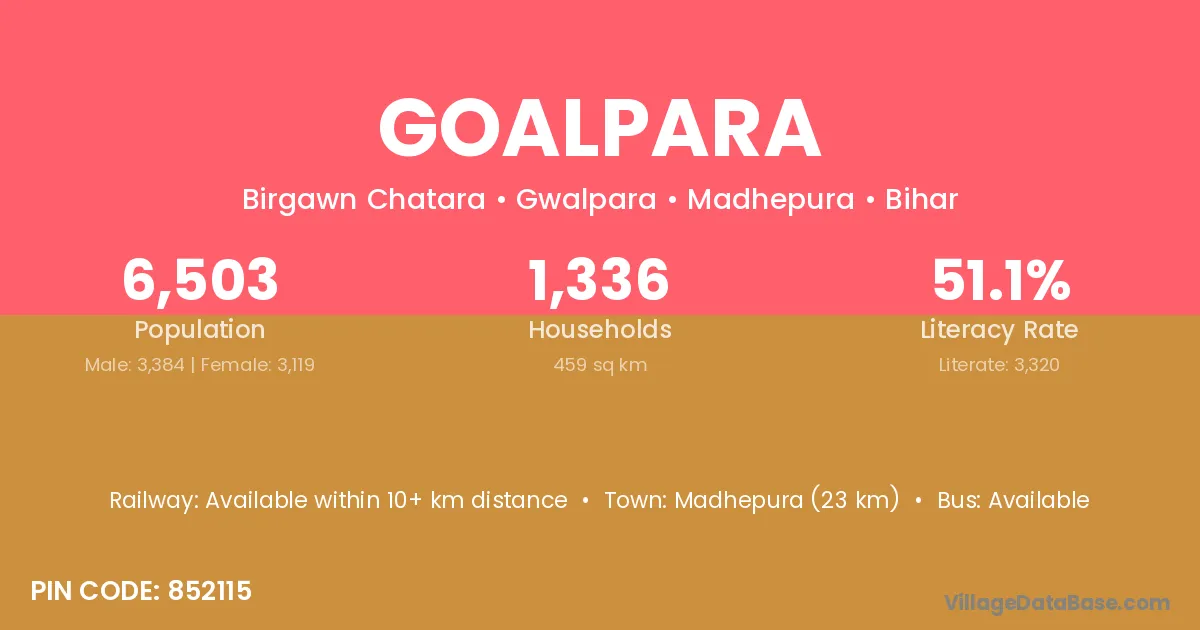 There are approximately 1,095 households in Goalpara village.