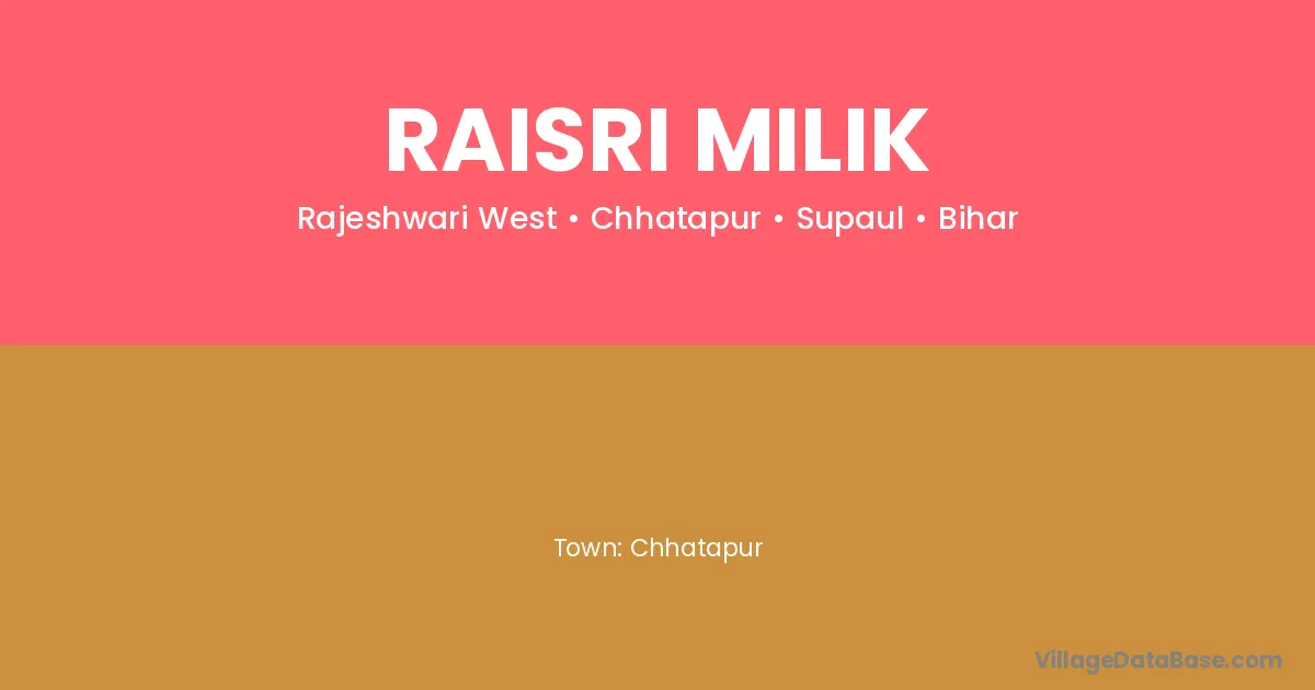 Raisri Milik village is located in the Chhatapur Subdivision of the Supaul district in Bihar .