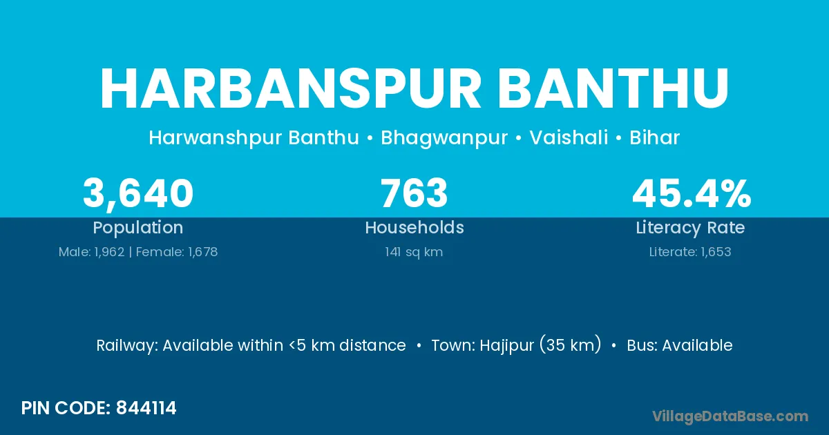 Hajipur (35 km) is the nearest town to Harbanspur Banthu village for major economic activities and is located approximately 35 km away.