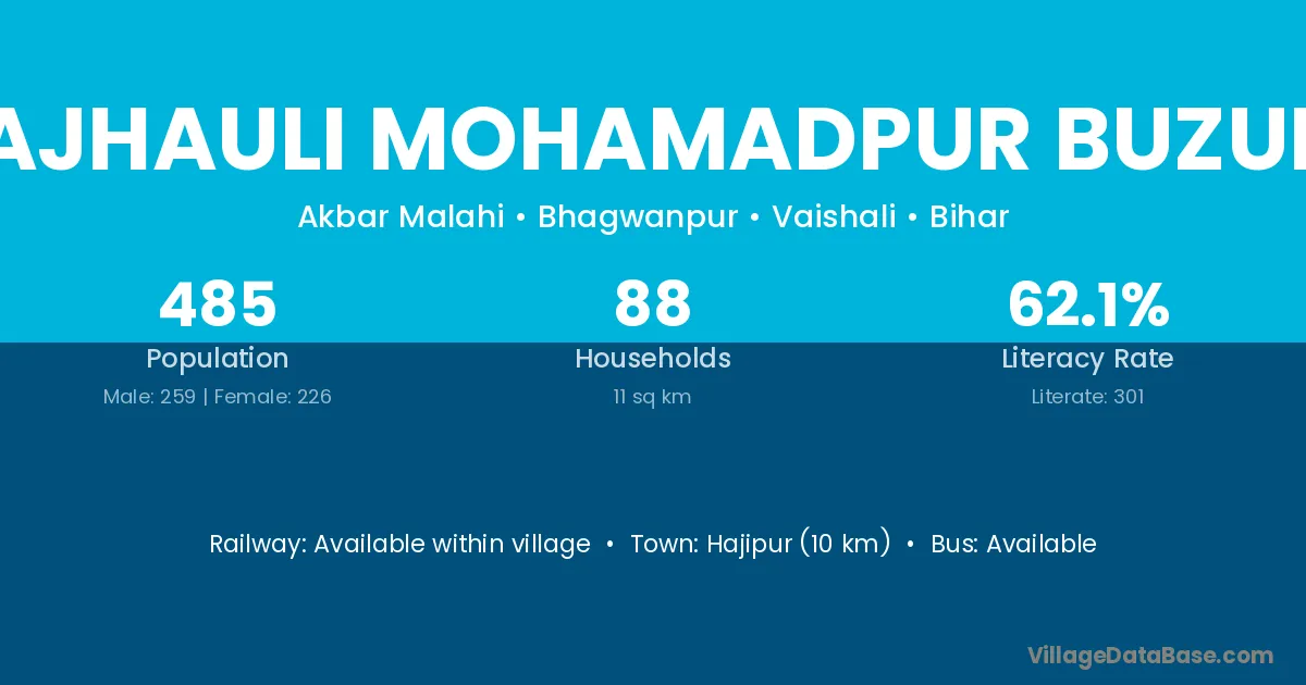 Majhauli Mohamadpur Buzurg village has a total population of 485 people, of which 259 are males and 226 are females.