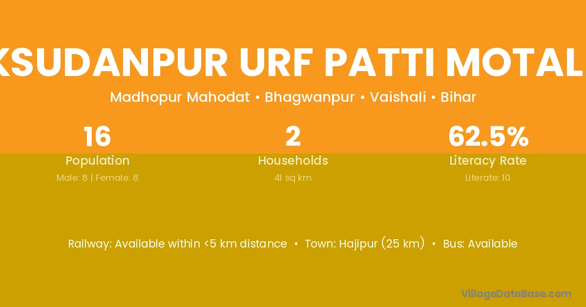 Maksudanpur Urf Patti Motaluka village has a total population of 16 people, of which 8 are males and 8 are females.