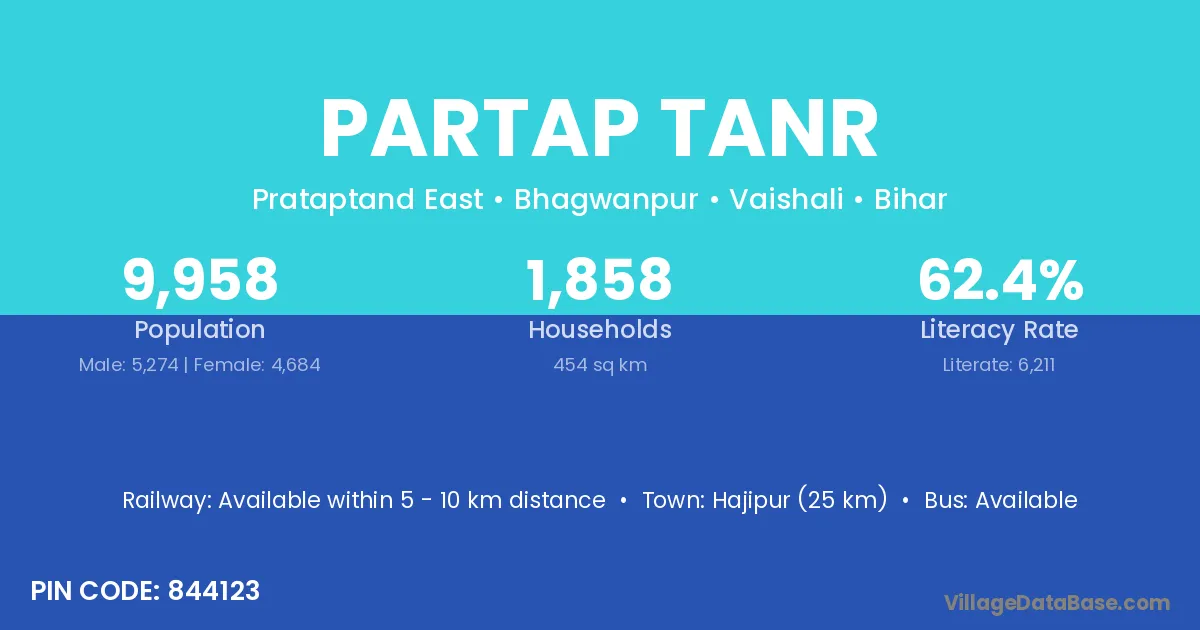 Hajipur (25 km) is the nearest town to Partap Tanr village for major economic activities and is located approximately 25 km away.