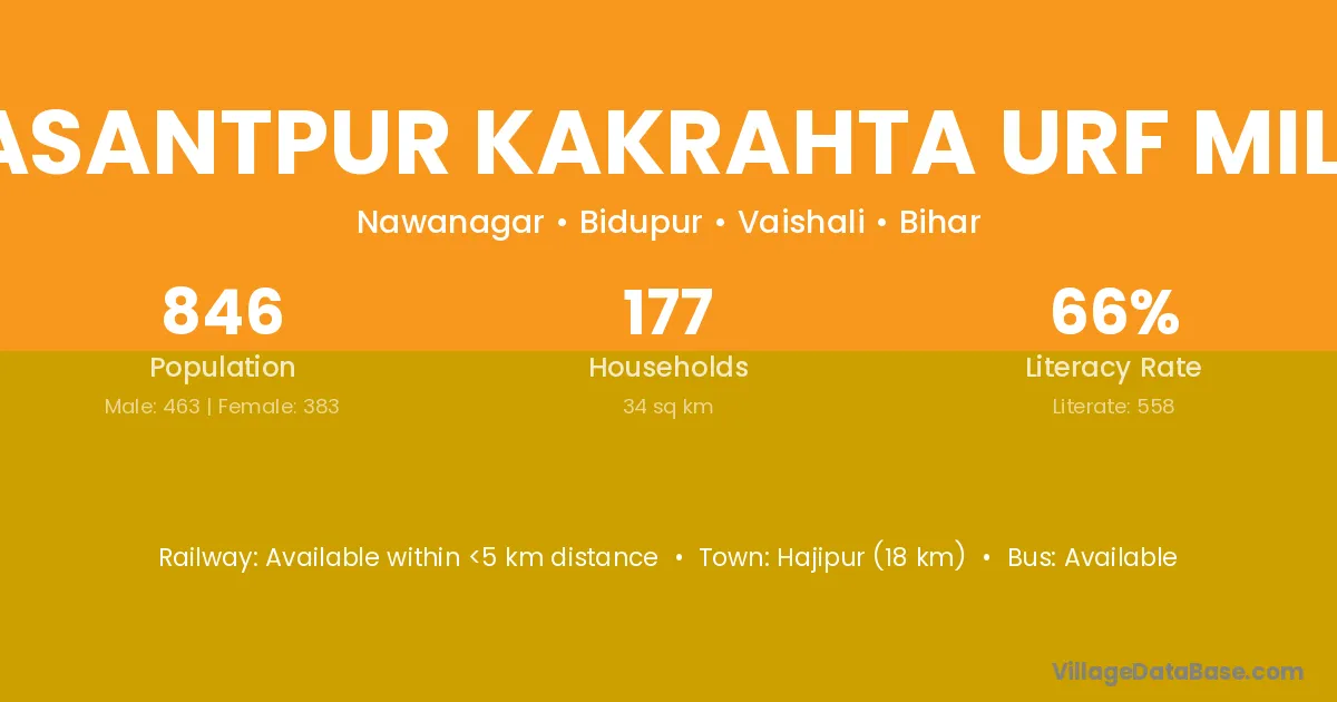 Hajipur (18 km) is the nearest town to Basantpur Kakrahta Urf Milki village for major economic activities and is located approximately 18 km away.