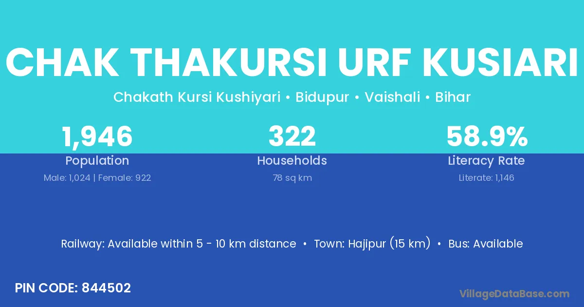 Hajipur (15 km) is the nearest town to Chak Thakursi Urf Kusiari village for major economic activities and is located approximately 15 km away.