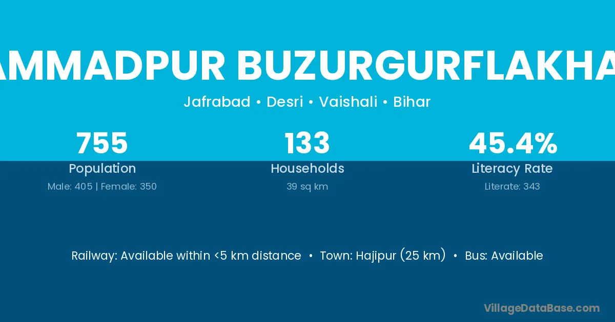 Hajipur (25 km) is the nearest town to Mohammadpur Buzurgurflakhanpur village for major economic activities and is located approximately 25 km away.