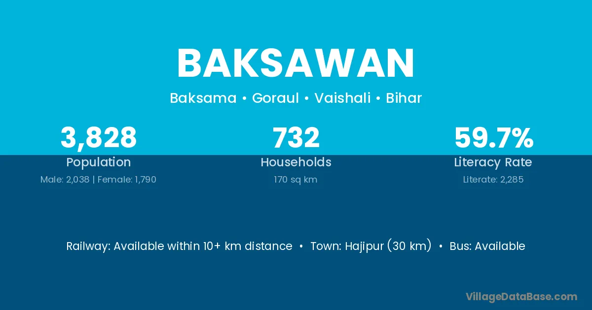 Hajipur (30 km) is the nearest town to Baksawan village for major economic activities and is located approximately 30 km away.