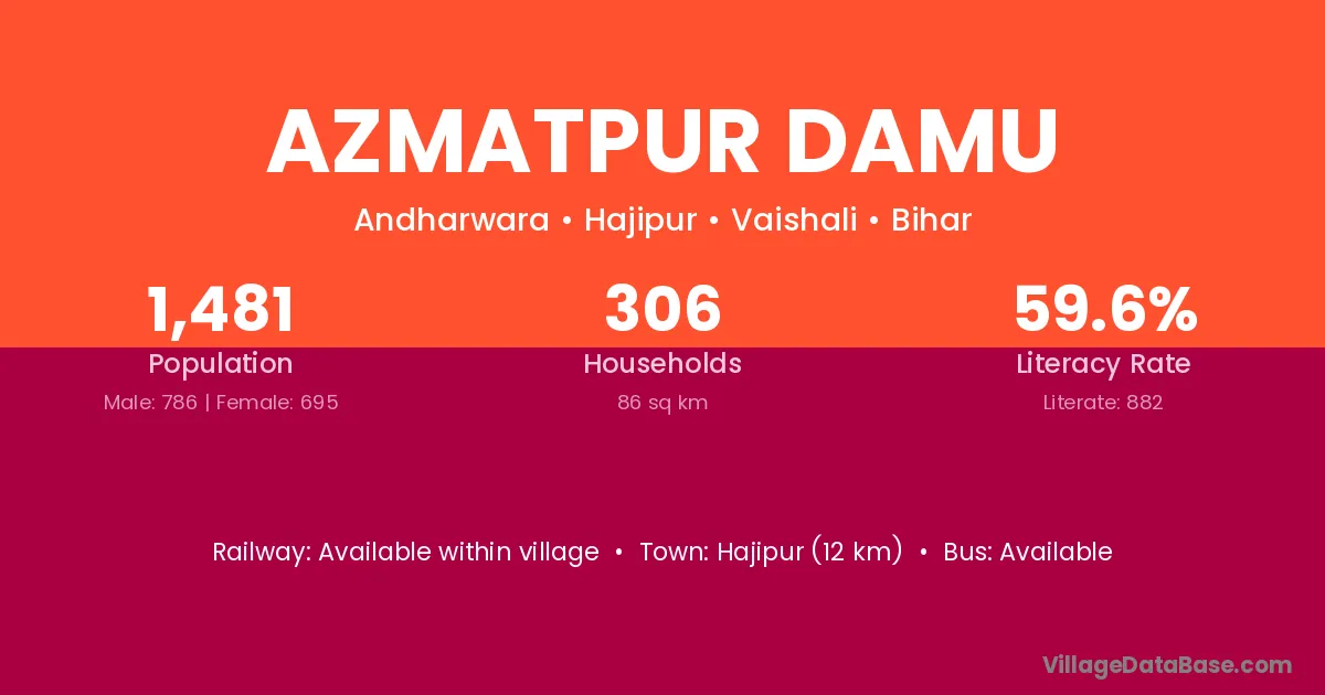 Hajipur (12 km) is the nearest town to Azmatpur Damu village for major economic activities and is located approximately 12 km away.