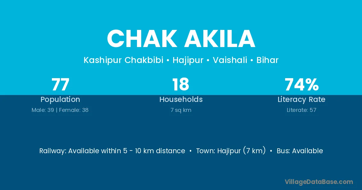 Hajipur (7 km) is the nearest town to Chak Akila village for major economic activities and is located approximately 7 km away.