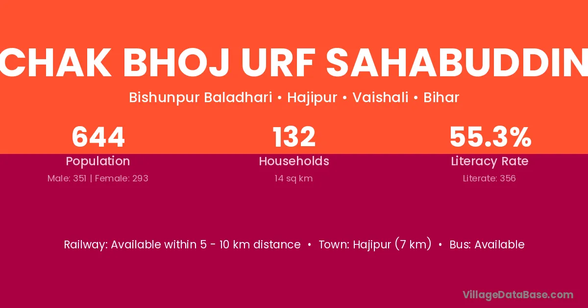 Chak Bhoj Urf Sahabuddin village has a total population of 644 people, of which 351 are males and 293 are females.