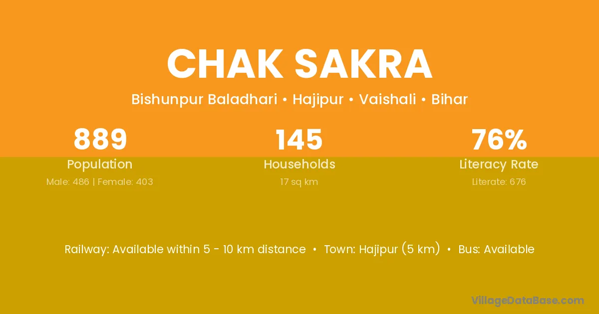 Hajipur (5 km) is the nearest town to Chak Sakra village for major economic activities and is located approximately 5 km away.