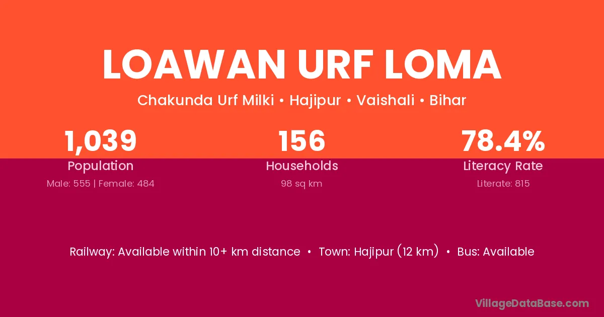 Hajipur (12 km) is the nearest town to Loawan Urf Loma village for major economic activities and is located approximately 12 km away.