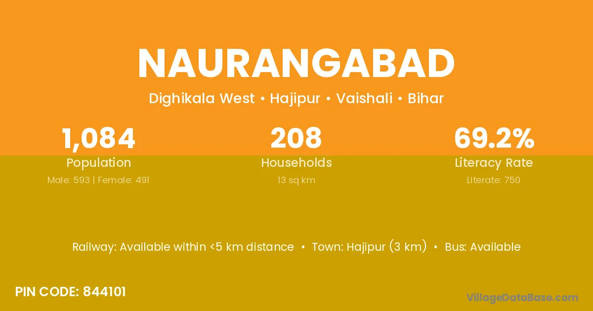 Hajipur (3 km) is the nearest town to Naurangabad village for major economic activities and is located approximately 3 km away.