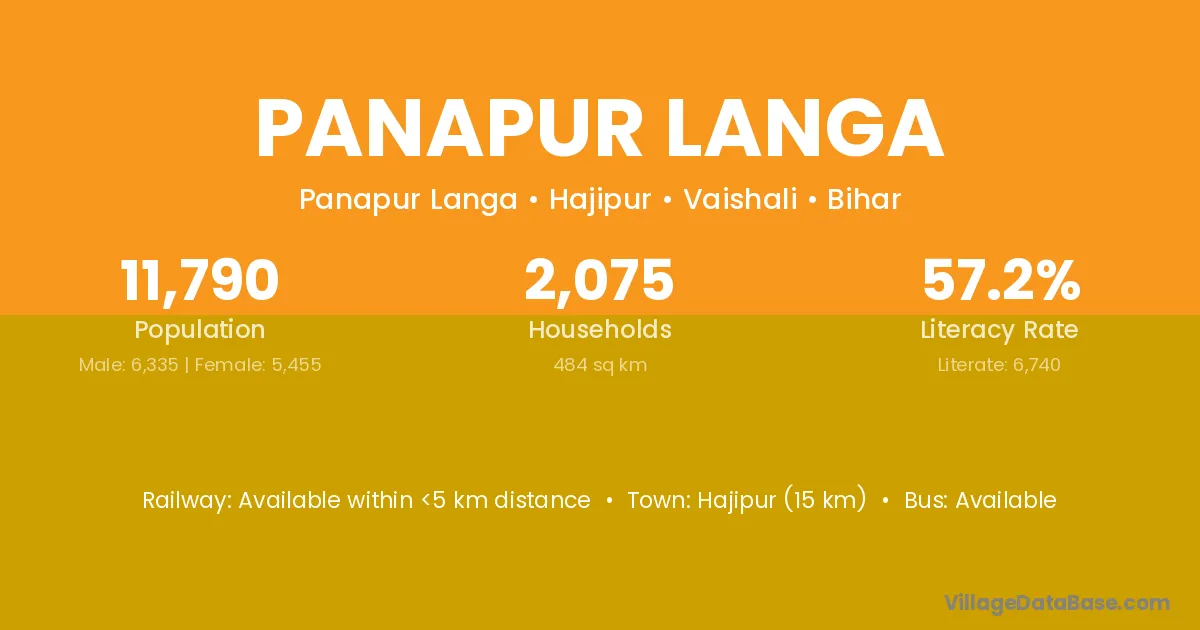 Hajipur (15 km) is the nearest town to Panapur Langa village for major economic activities and is located approximately 15 km away.