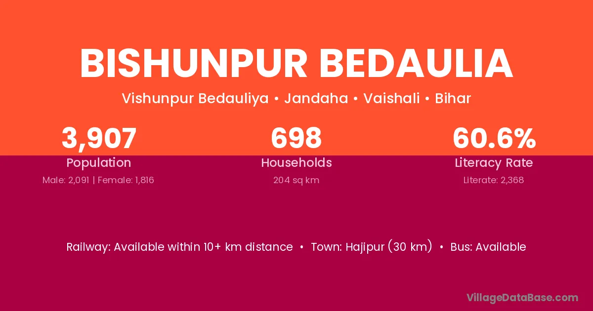 There are approximately 698 households in Bishunpur Bedaulia village.