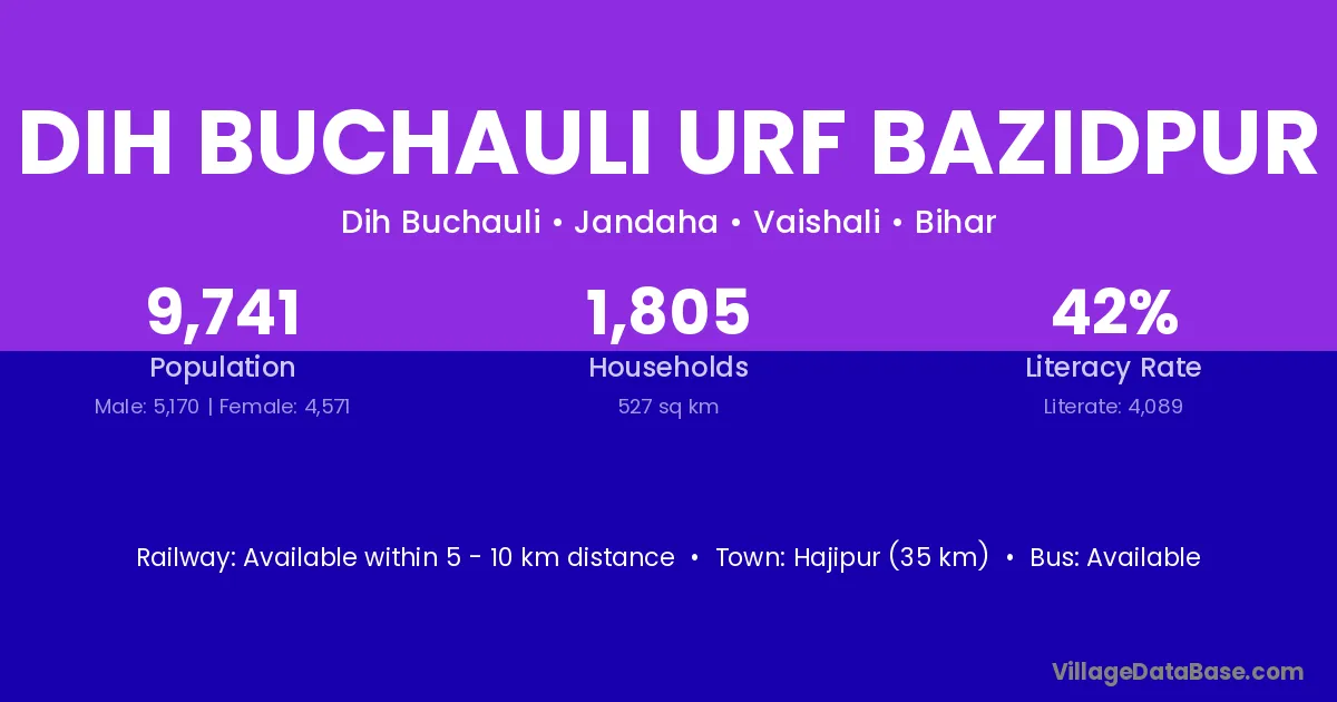 Dih Buchauli Urf Bazidpur village has a total population of 9,741 people, of which 5,170 are males and 4,571 are females.
