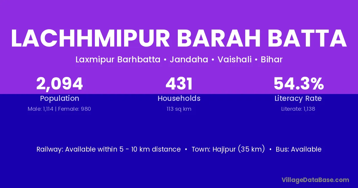 Hajipur (35 km) is the nearest town to Lachhmipur Barah Batta village for major economic activities and is located approximately 35 km away.