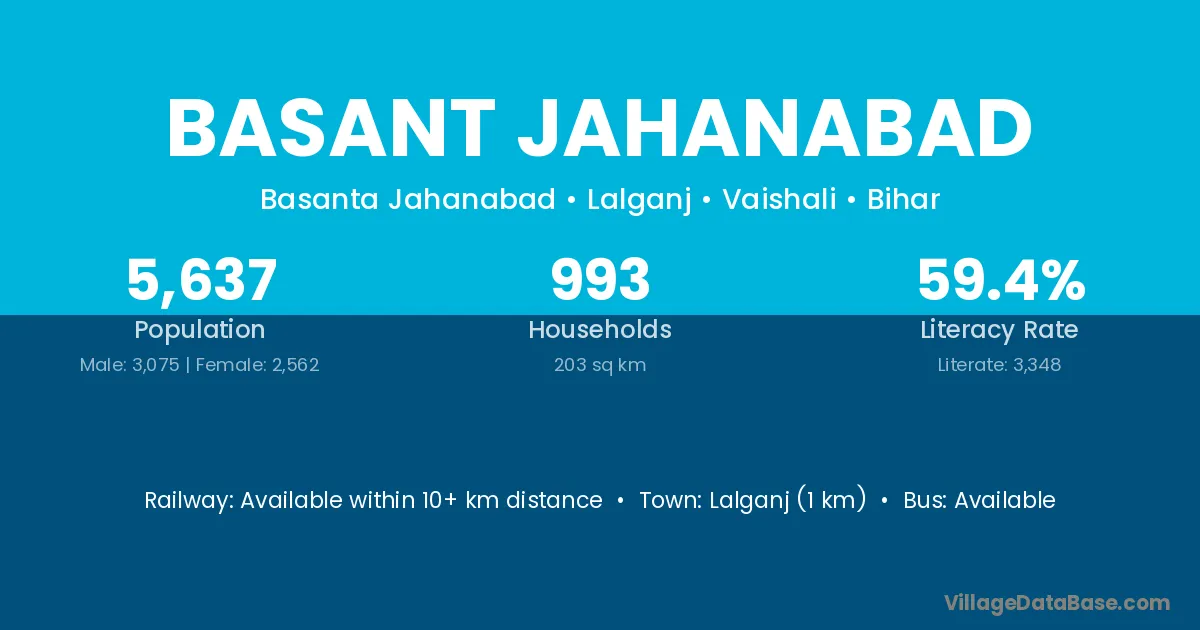 Lalganj (1 km) is the nearest town to Basant Jahanabad village for major economic activities and is located approximately 1 km away.