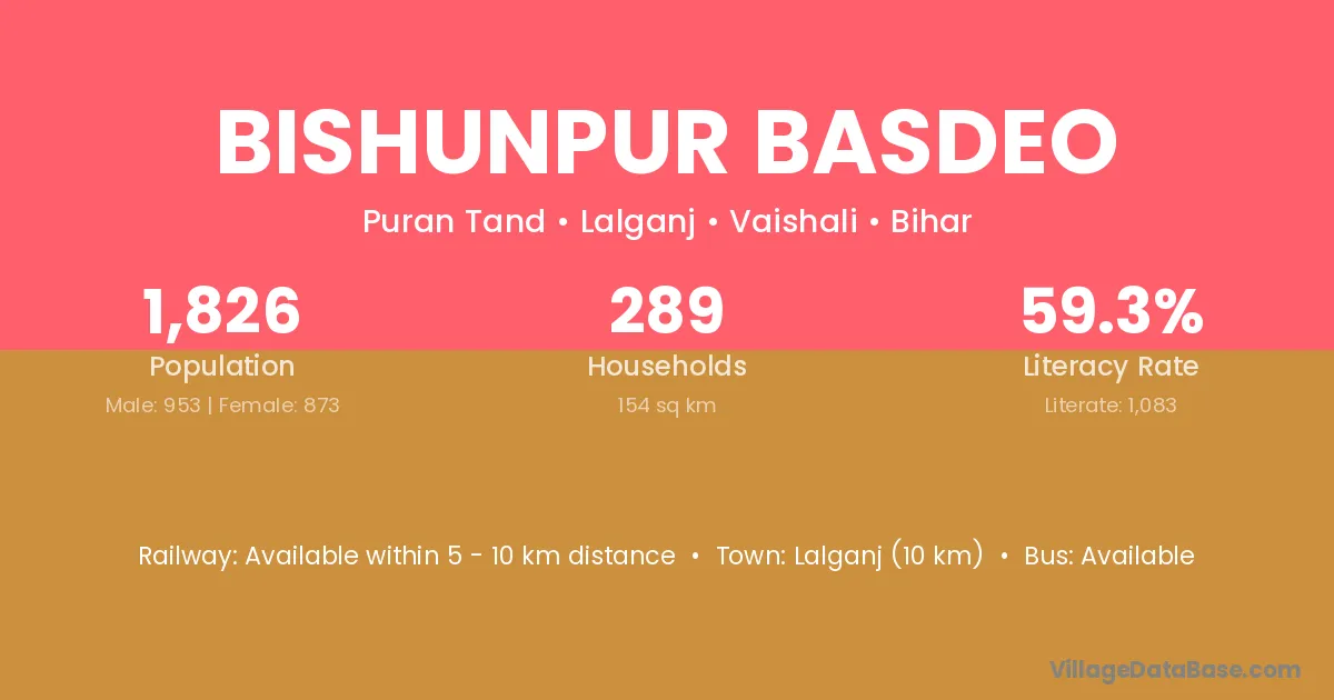 Lalganj (10 km) is the nearest town to Bishunpur Basdeo village for major economic activities and is located approximately 10 km away.
