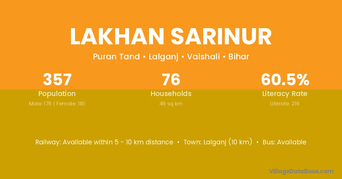 Lakhan Sarinur village has a total population of 357 people, of which 176 are males and 181 are females.