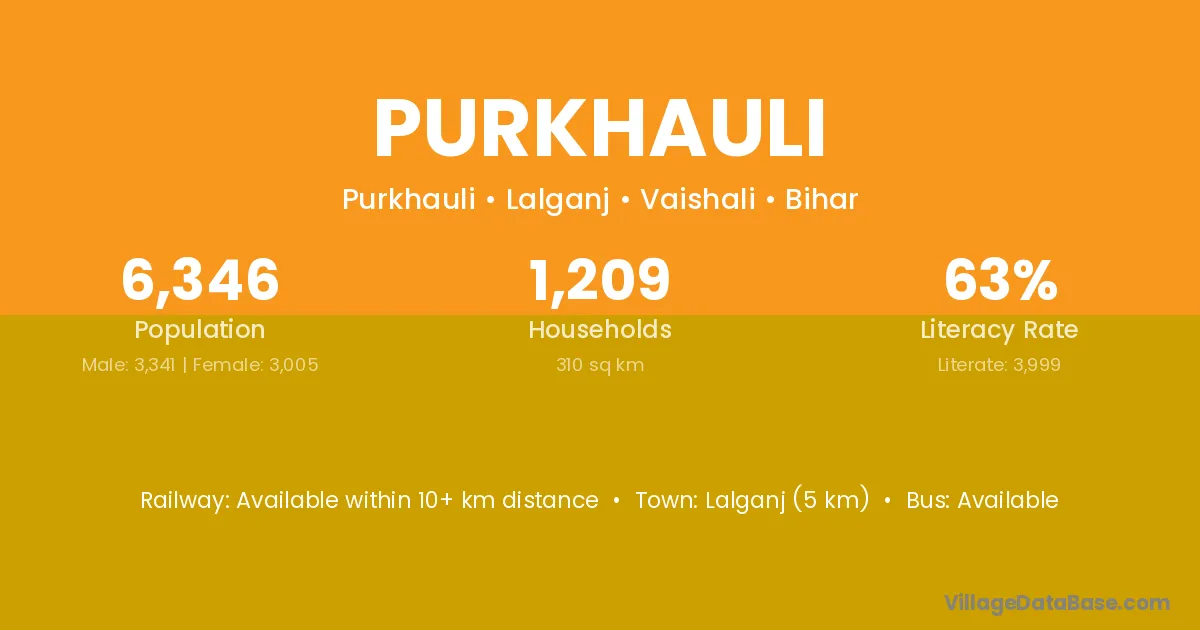 Lalganj (5 km) is the nearest town to Purkhauli village for major economic activities and is located approximately 5 km away.