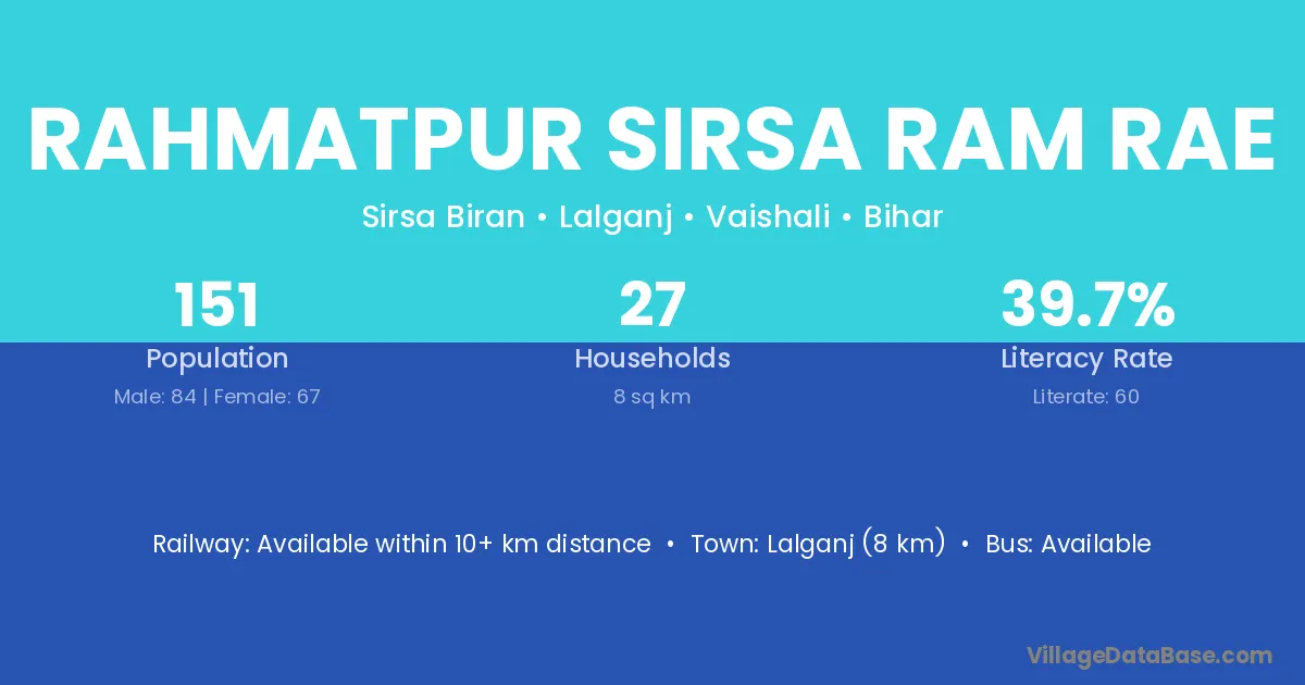 Lalganj (8 km) is the nearest town to Rahmatpur Sirsa Ram Rae village for major economic activities and is located approximately 8 km away.