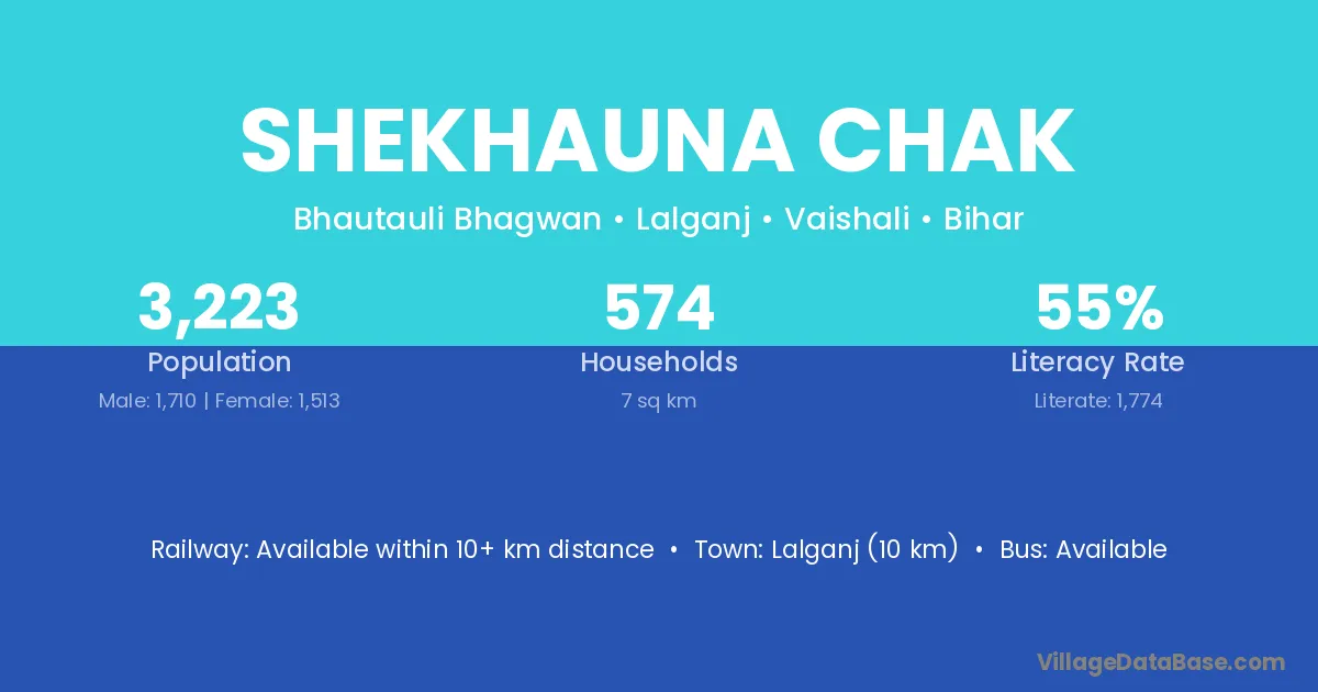 Lalganj (10 km) is the nearest town to Shekhauna Chak village for major economic activities and is located approximately 10 km away.