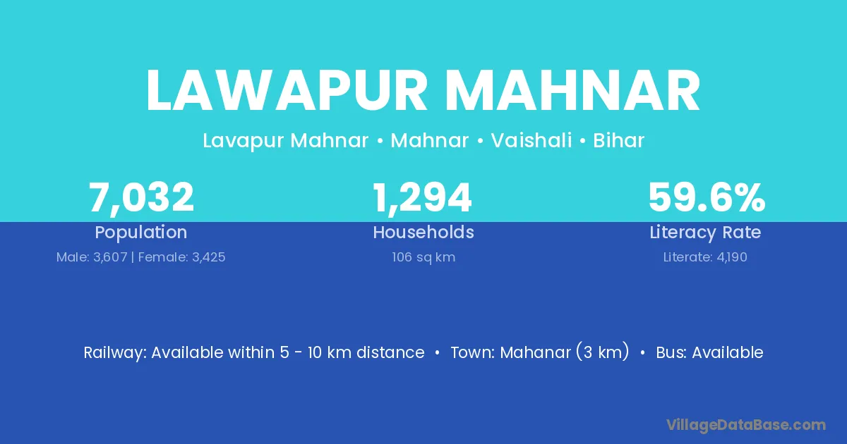 Mahanar (3 km) is the nearest town to Lawapur Mahnar village for major economic activities and is located approximately 3 km away.