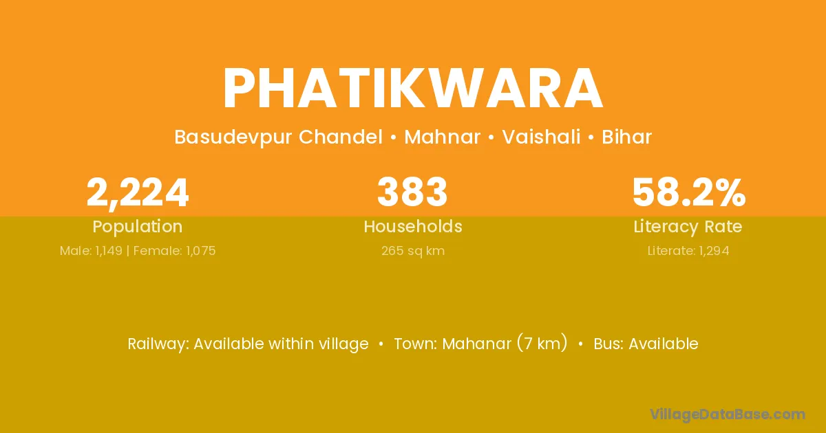 Phatikwara village has a total population of 2,224 people, of which 1,149 are males and 1,075 are females.