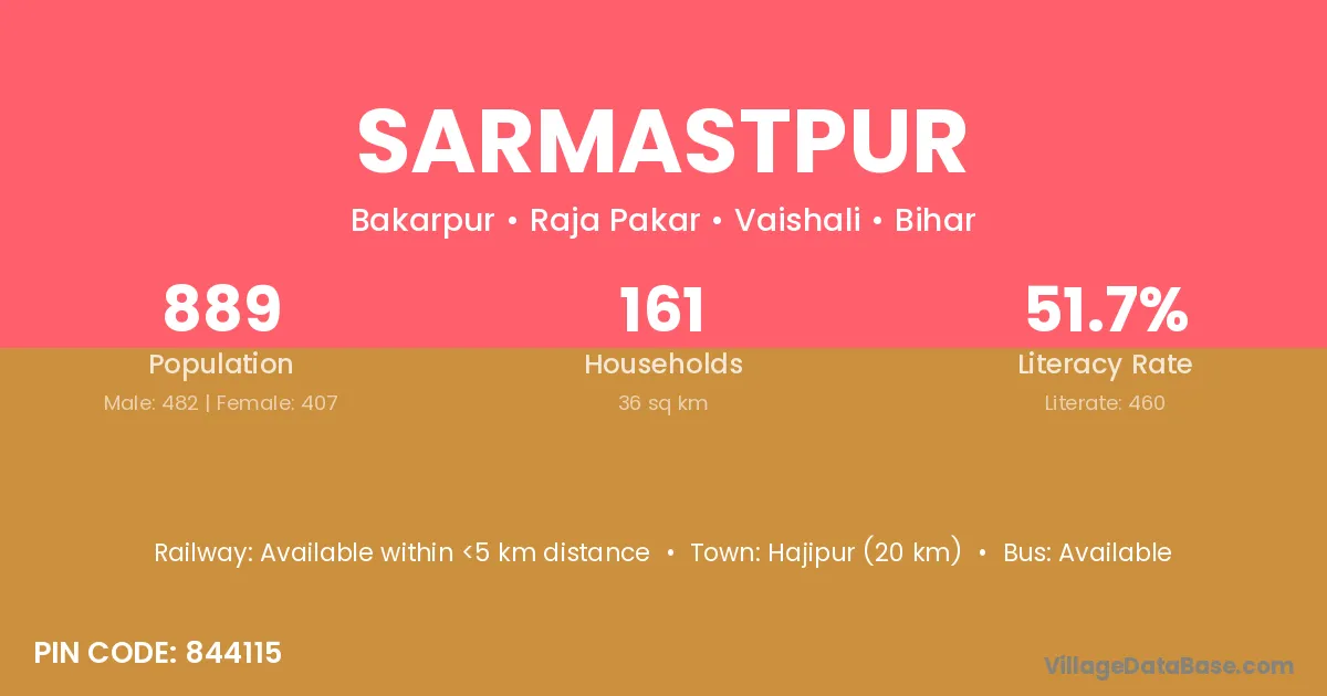 Mahanar (15 km) is the nearest town to Sarmastpur village for major economic activities and is located approximately 15 km away.