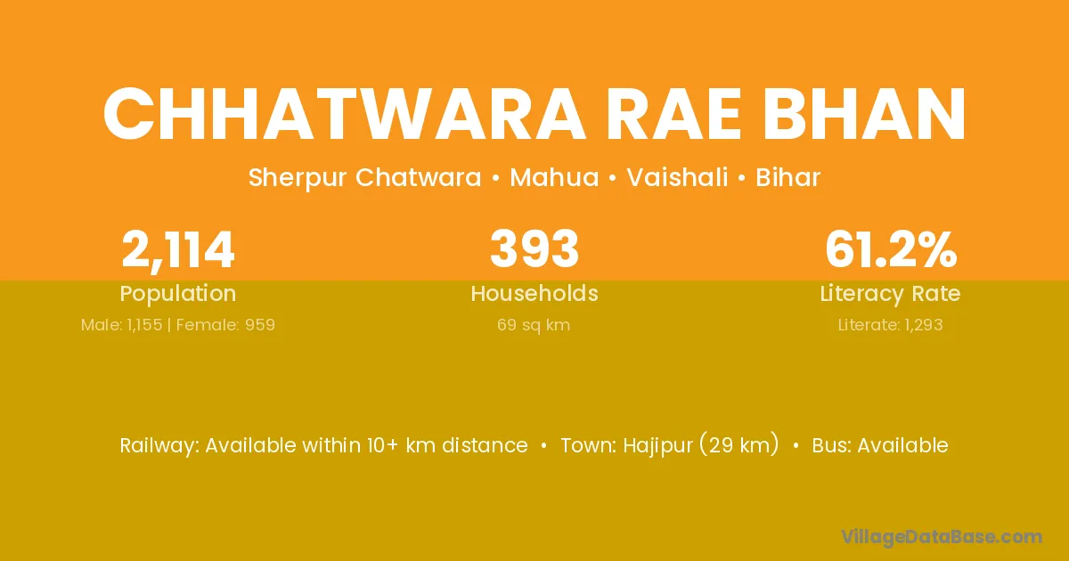 Hajipur (29 km) is the nearest town to Chhatwara Rae Bhan village for major economic activities and is located approximately 29 km away.