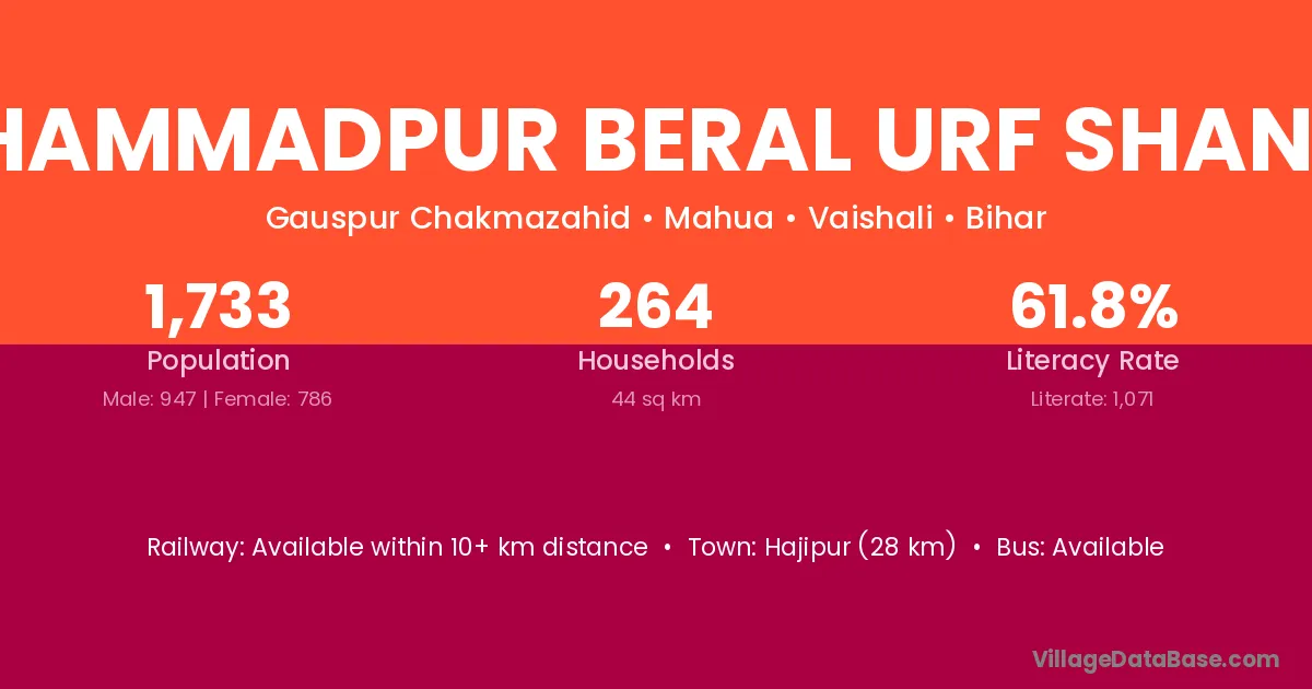 Mohammadpur Beral Urf Shankar village has a total population of 1,733 people, of which 947 are males and 786 are females.