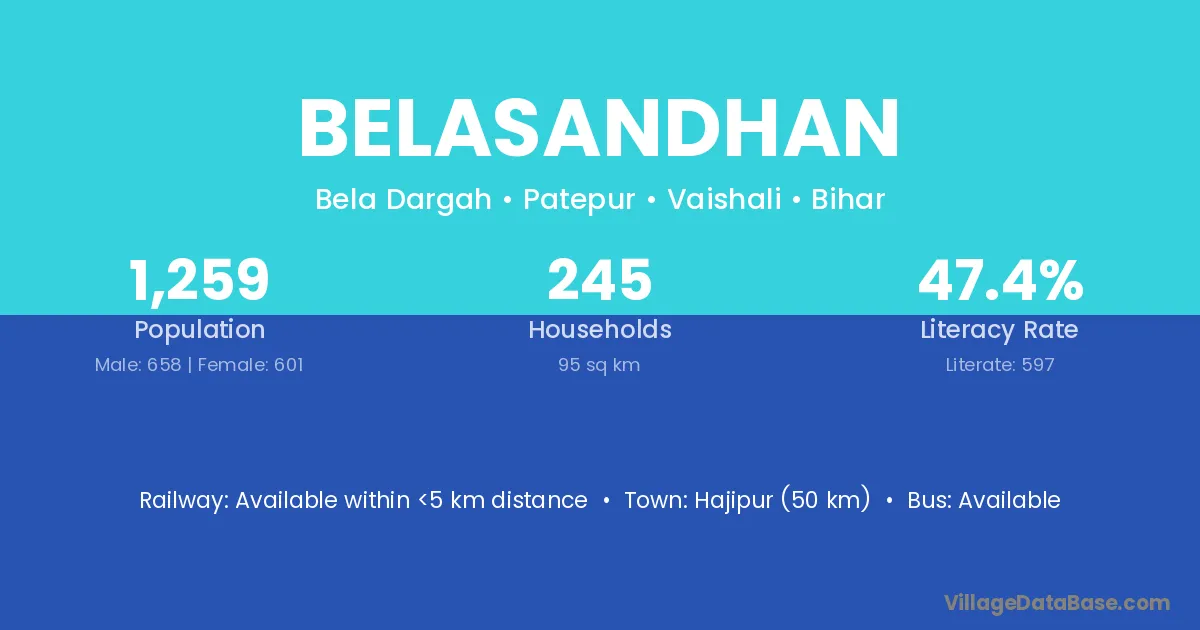 Hajipur (50 km) is the nearest town to Belasandhan village for major economic activities and is located approximately 50 km away.
