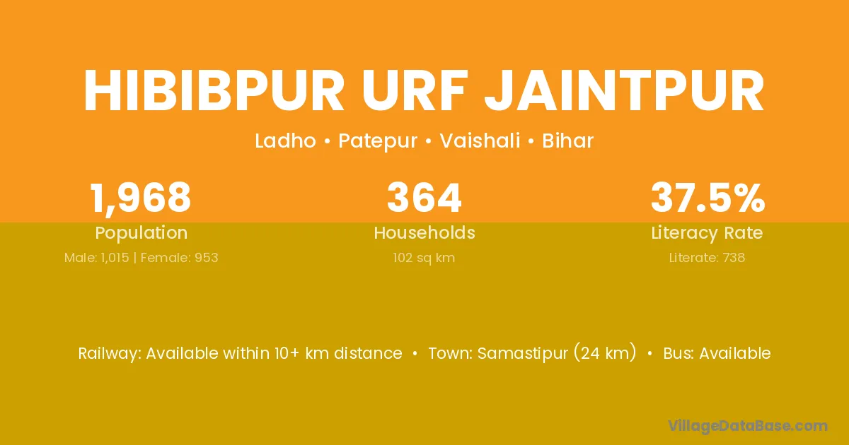 Samastipur (24 km) is the nearest town to Hibibpur Urf Jaintpur village for major economic activities and is located approximately 24 km away.