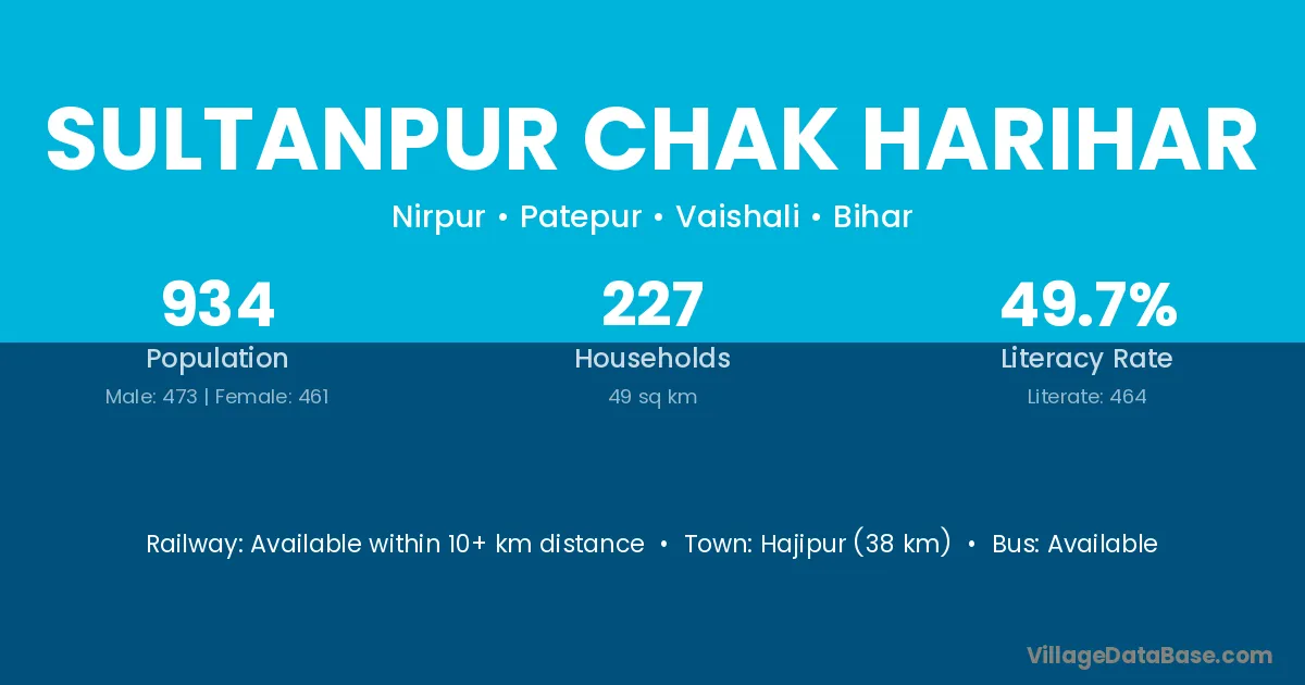 Sultanpur Chak Harihar village has a total population of 934 people, of which 473 are males and 461 are females.