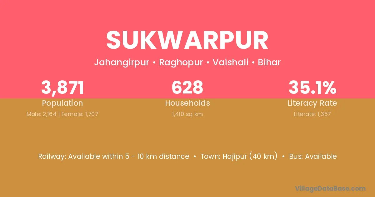 Hajipur (40 km) is the nearest town to Sukwarpur village for major economic activities and is located approximately 40 km away.