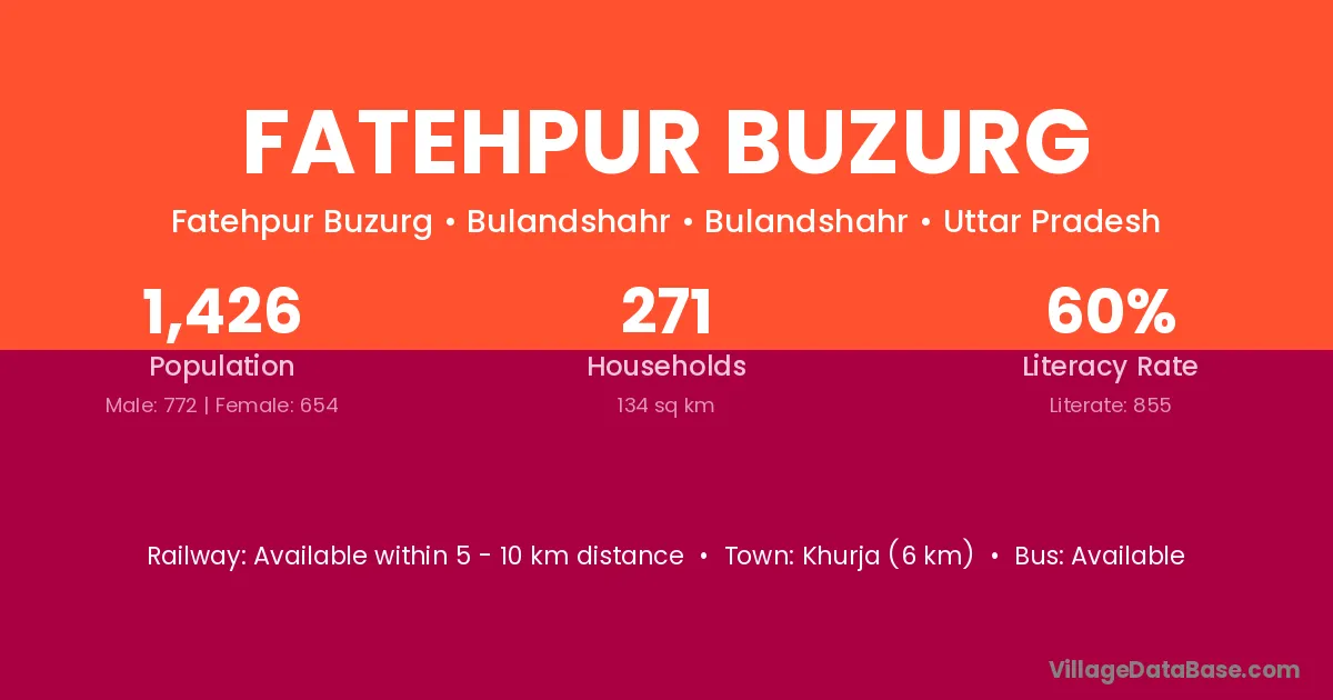 Fatehpur Buzurg village has a total population of 2,404 people, of which 1,246 are males and 1,158 are females.