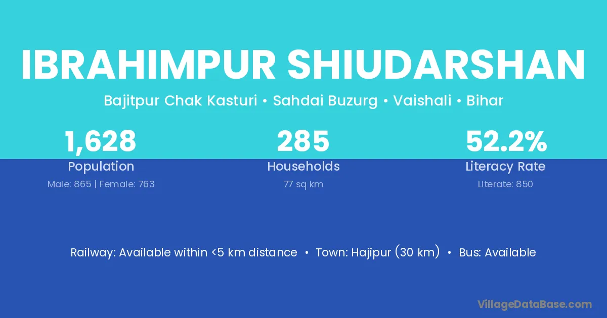 Hajipur (30 km) is the nearest town to Ibrahimpur Shiudarshan village for major economic activities and is located approximately 30 km away.