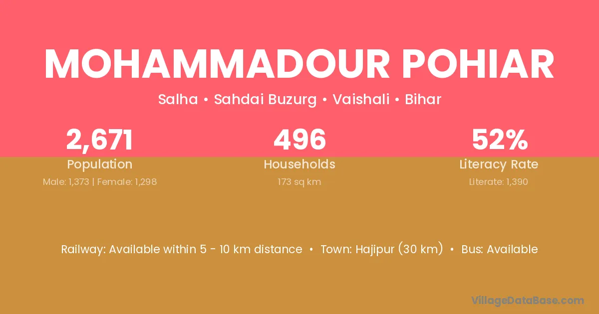 Mohammadour Pohiar village has a total population of 2,671 people, of which 1,373 are males and 1,298 are females.