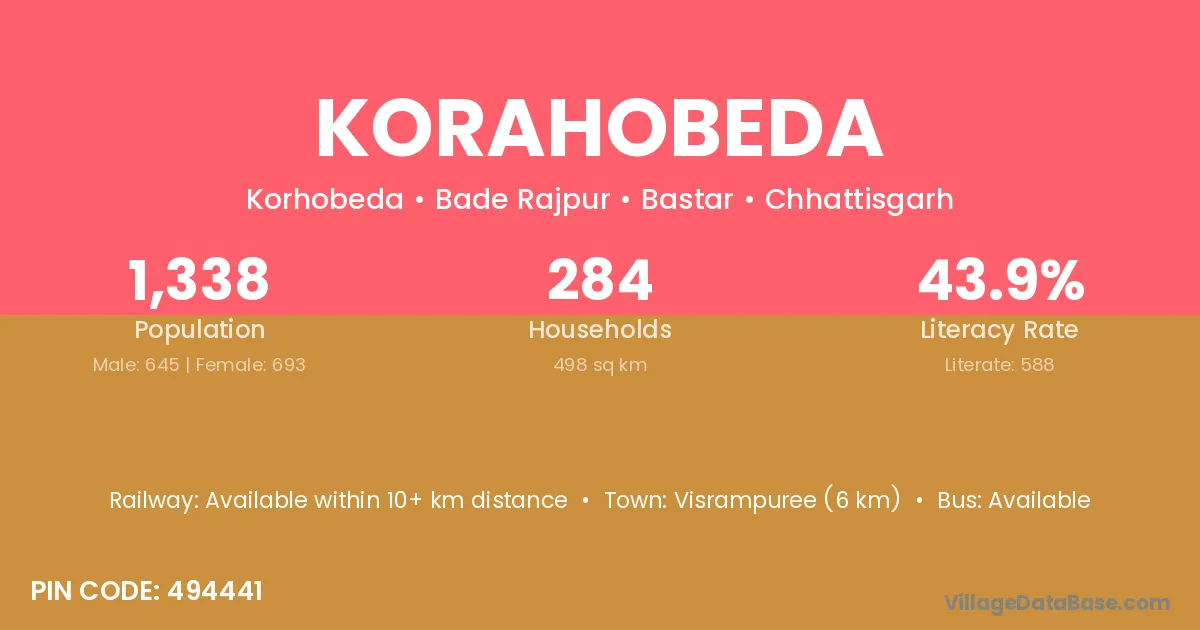 According to Census 2011 information, the village code of Korahobeda village is 494441.