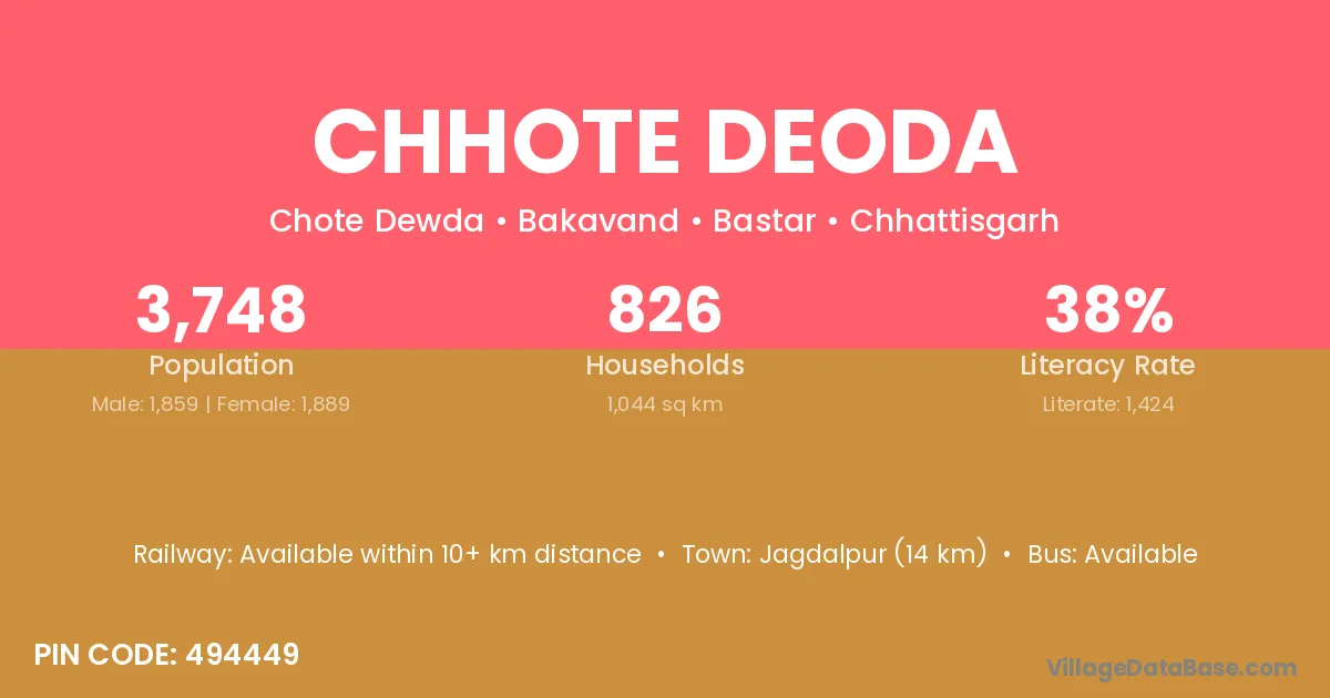 Chhote Deoda village has a total population of 3,748 people, of which 1,859 are males and 1,889 are females.