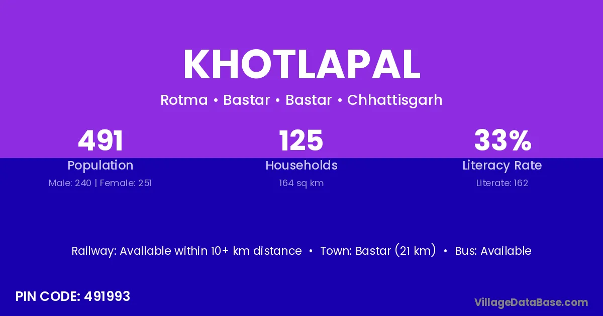 According to Census 2011 information, the village code of Khotlapal village is 491993.