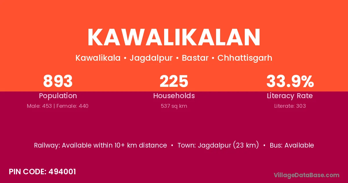 Jagdalpur (23 km) is the nearest town to Kawalikalan village for major economic activities and is located approximately 23 km away.