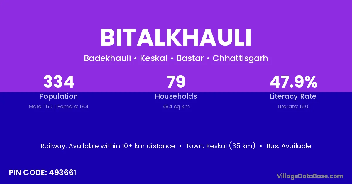 Bitalkhauli village is located in the Keskal Tehsil of the Bastar district in Chhattisgarh .