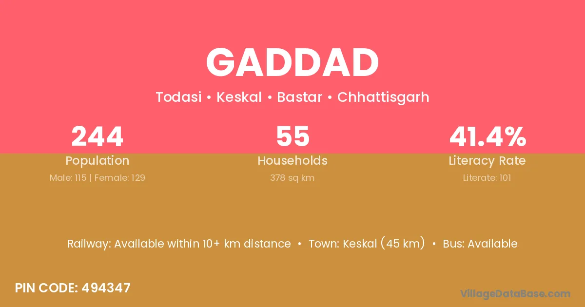Keskal (45 km) is the nearest town to Gaddad village for major economic activities and is located approximately 45 km away.