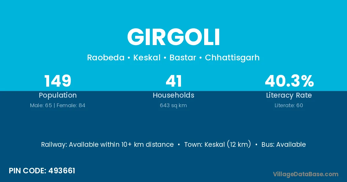 Girgoli village is located in the Keskal Tehsil of the Bastar district in Chhattisgarh .