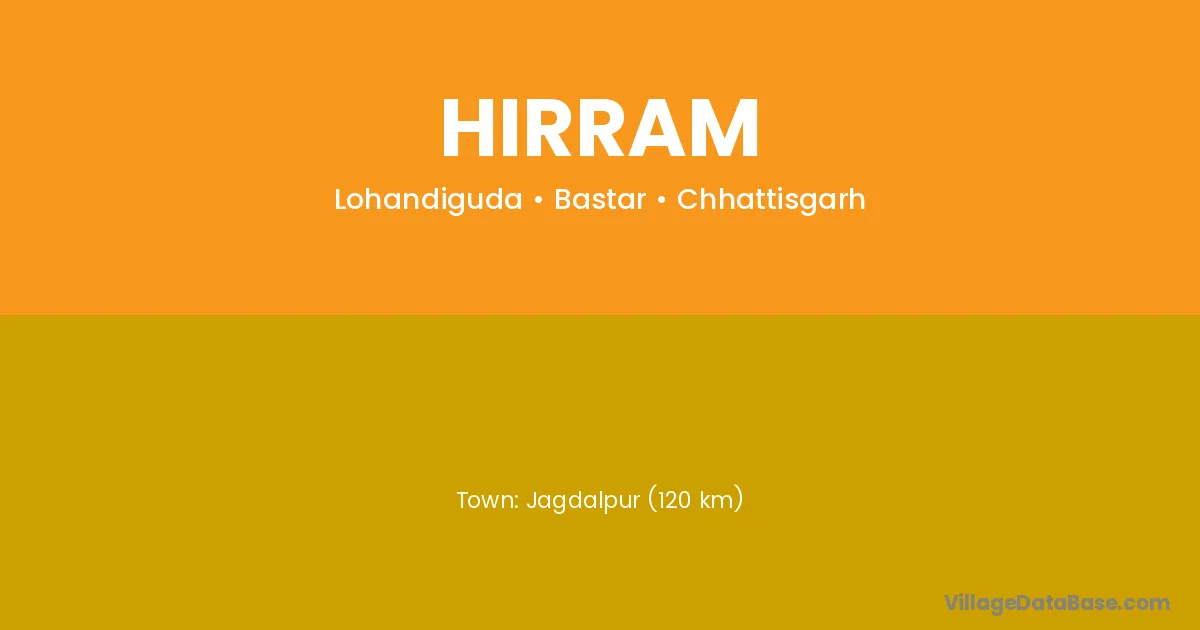 Jagdalpur (120 km) is the nearest town to Hirram village for major economic activities and is located approximately 120 km away.