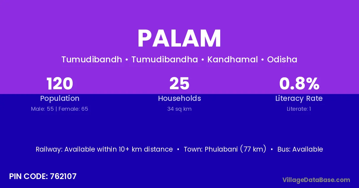 Jagdalpur (80 km) is the nearest town to Palam village for major economic activities and is located approximately 80 km away.