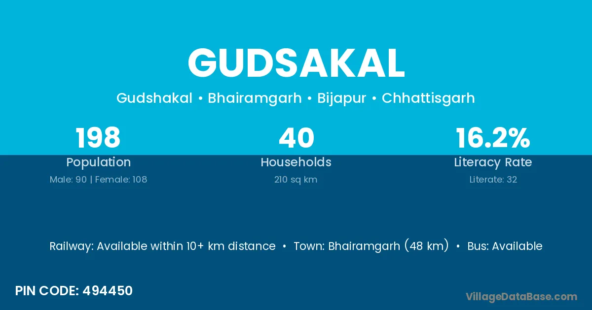 According to Census 2011 information, the village code of Gudsakal village is 494450.