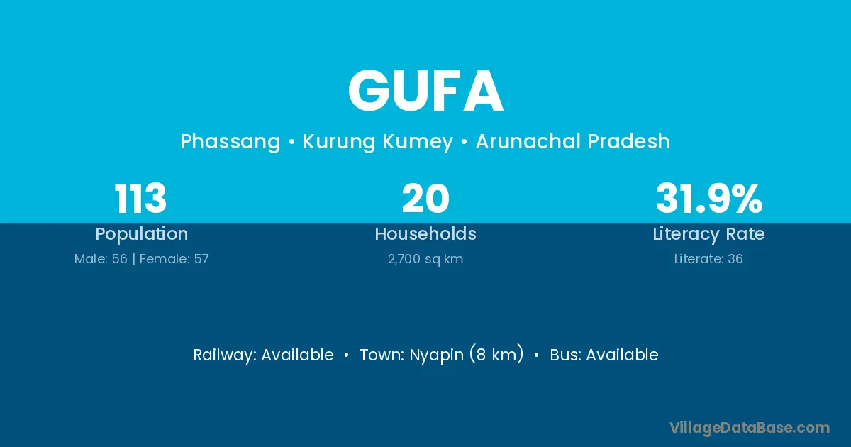 Gufa village has a total population of 67 people, of which 32 are males and 35 are females.