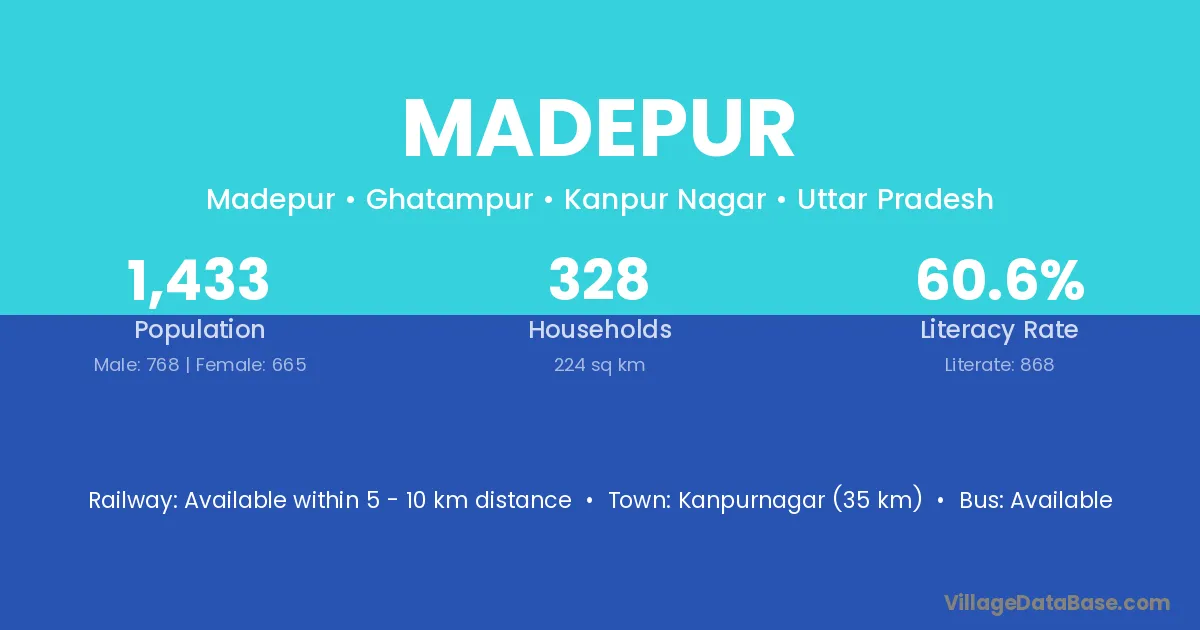 The literacy rate of Madepur village is 0.00%. Male literacy stands at 0.00% and female literacy at 0.00%.